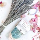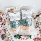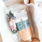 Sales de baño, yerbas, palo santo, vela tealight y amuleto.
